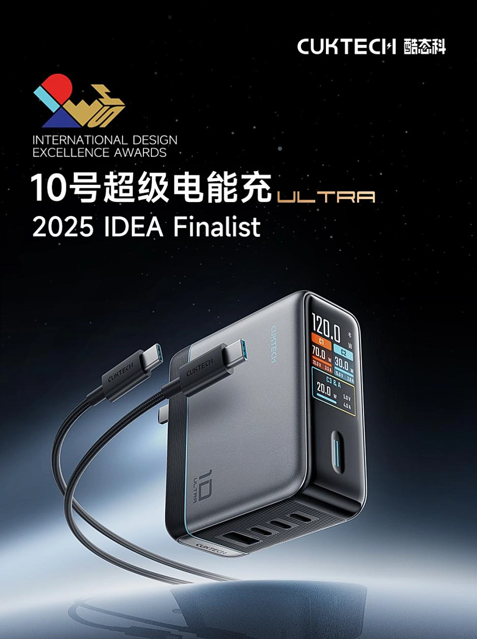 近日,被誉为“设计界奥斯卡”的 2025 年度 IDEA 设计奖(International Design Excellence Awards)获奖名单正式揭晓,CUKTECH 酷态科旗下 10 号超级电能充 Ultra 与 10 号超级电能线凭借突破性的技术创新与用户导向设计,双双斩获 IDEA Finalist 荣誉,成为快充领域双奖得主。