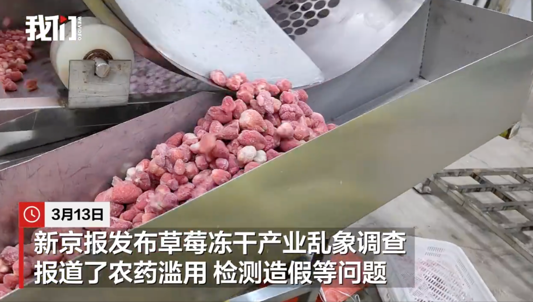 针对3月13日媒体报道冻干草莓产业链存在的问题,云南省农业农村厅高度重视,立即联合公安、市场监管等部门成立调查组,对草莓生产基地、加工企业、流通市场等开展实地核查。如发现违法违规行为,将依法依规严肃处理。