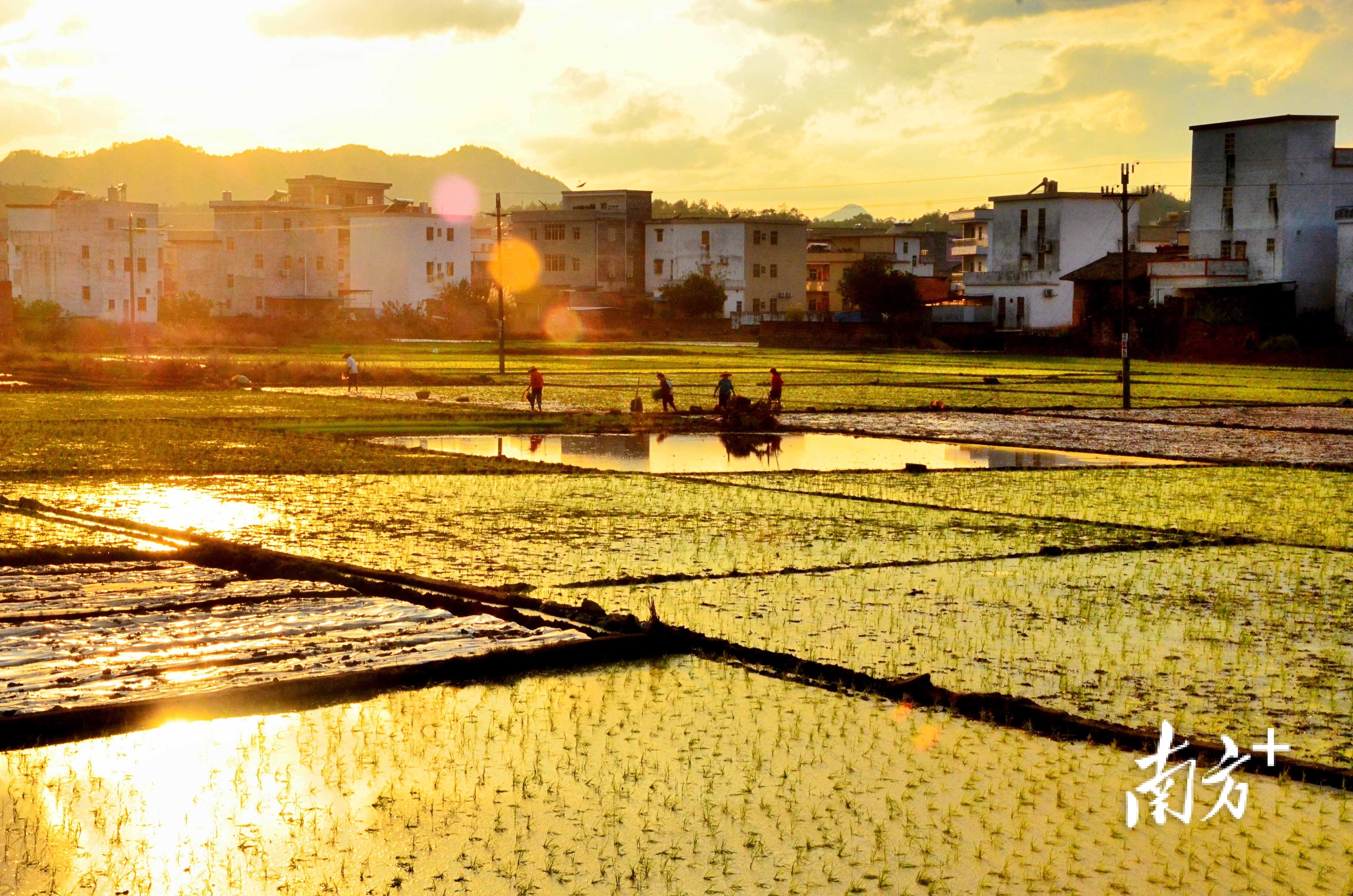 广东梅州,晨雾刚散,农人弯腰插下青青秧苗,一茬接一茬,身后便是一片嫩绿的春天。南方+拍客 丘仕宝 摄